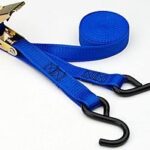 This 1″ x 14′ long webbing ratchet strap with coated hooks is simple and easy to use. Just attach hooks to your cargo or anchor points, pull the webbing tight, and pump the handle. The quick release metal ratchet takes up slack and tightens the webbing strap with vise-like gripping power. This tie down has a breaking strength of 1,500 lbs and a working load capacity of 500 lbs. The strap is made of Power Web Plus webbing, which features 360 degree protection. It has a flexible edge design to absorb side impacts, a unique high strength weave design, and triple layer webbing which creates a protective barrier around the high-strength inner core fibers. Designed for long life and increased safety. Color: Blue