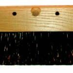 Staple set in clear lacquered hardwood block with one threaded handle hole. Three rows of filling material. These brushes are used for applying