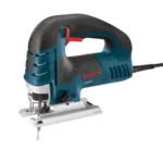 The Bosch JS470E Top-Handle Jig Saw provides unsurpassed cut precision. Finish carpenters and kitchen and bath installers will appreciate the best-in-class 7.0 Amp motor and variable-speed control, making this saw an excellent choice for curve-cutting. A dial on the back of the tool controls the maximum speed and the accelerator trigger controls the operating speed. Built with an aluminum gearbox and an insulated cover, this jig saw comes with a low-vibration plunging design and Constant Response circuitry for consistent speed under load. It has a large die-cast aluminum footplate. The JS470E’s multidirectional blade clamp delivers superior grip of T-shank blades (but it does not accept U-shank blades). The blade-ejection lever that eliminates need to touch hot blades. It has a dust blower for max cut-line visibility.