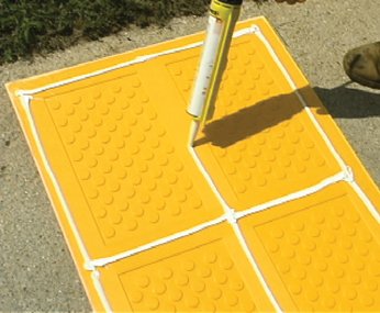 Surfaced Applied Tactile, available in both Rectangular and Radius, is made of a colorfast and UV stable homogenous glass and carbon composite with fiberglass truncated domes for enhanced durability. The Surface Applied Tactile is used to retrofit over an existing concrete substrate and can be installed in as little as 10 minutes.