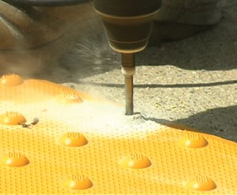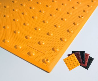 Surfaced Applied Tactile, available in both Rectangular and Radius, is made of a colorfast and UV stable homogenous glass and carbon composite with fiberglass truncated domes for enhanced durability. The Surface Applied Tactile is used to retrofit over an existing concrete substrate and can be installed in as little as 10 minutes.