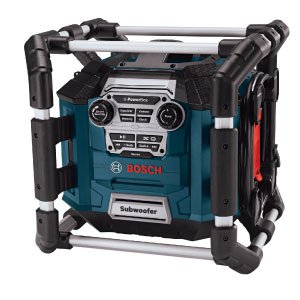 The Bosch Power Box PB360S offers a high performance weather-resistant 4-speaker system and integrated subwoofer to produce a high quality, enriched stereo sound in 360-degrees and delivers up to 26 watts of sound output. Includes AM/FM radio with 20 FM and 10 AM presets, 4 preset and custom equalizer settings, protective roll cage, 4-way power outlets and 12V DC adapter. Operate the Power Box 360 with Bosch 14.4V-18V Lithium-Ion batteries, or charge them with the unit’s built-in battery charger. The integrated Digital Media Bay includes a powered USB port and SD/MMC card slot for compatibility with digital memory card devices, as well as two auxiliary inputs for MP3 players, CD players or portable satellite receivers. Surround yourself with the best all-around jobsite radio.