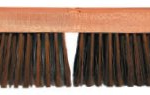 Round Carbon Steel Wire. Staple set in smooth sanded hardwood block with two tapered handle holes. Wide flare on ends allows close sweeping next to curbs.