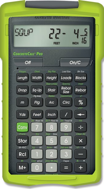The easy-to-use ConcreteCalc Pro helps reduce material waste, improve design accuracy and cut estimating time. Increase efficiency in the field or in the office with fast, accurate solutions for Square-ups, Loads, Area, Volume, Rebar, Drop, Stairs and much more.