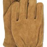 Split cowhide leather driver with polyester lining. Gunn-cut design with keystone thumb, shirred elastic back and open cuff.